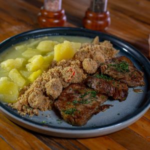 Cupim na Manteiga de Garrafa, Mandioca Cozida e Farofa de Banana